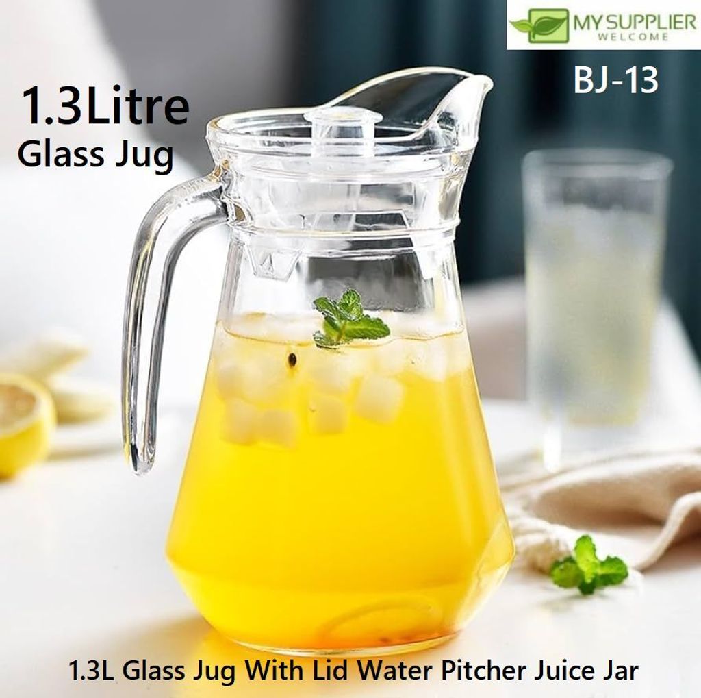 BJ-13 1.3L Glass Jug With Lid Water Pitcher Juice Jar