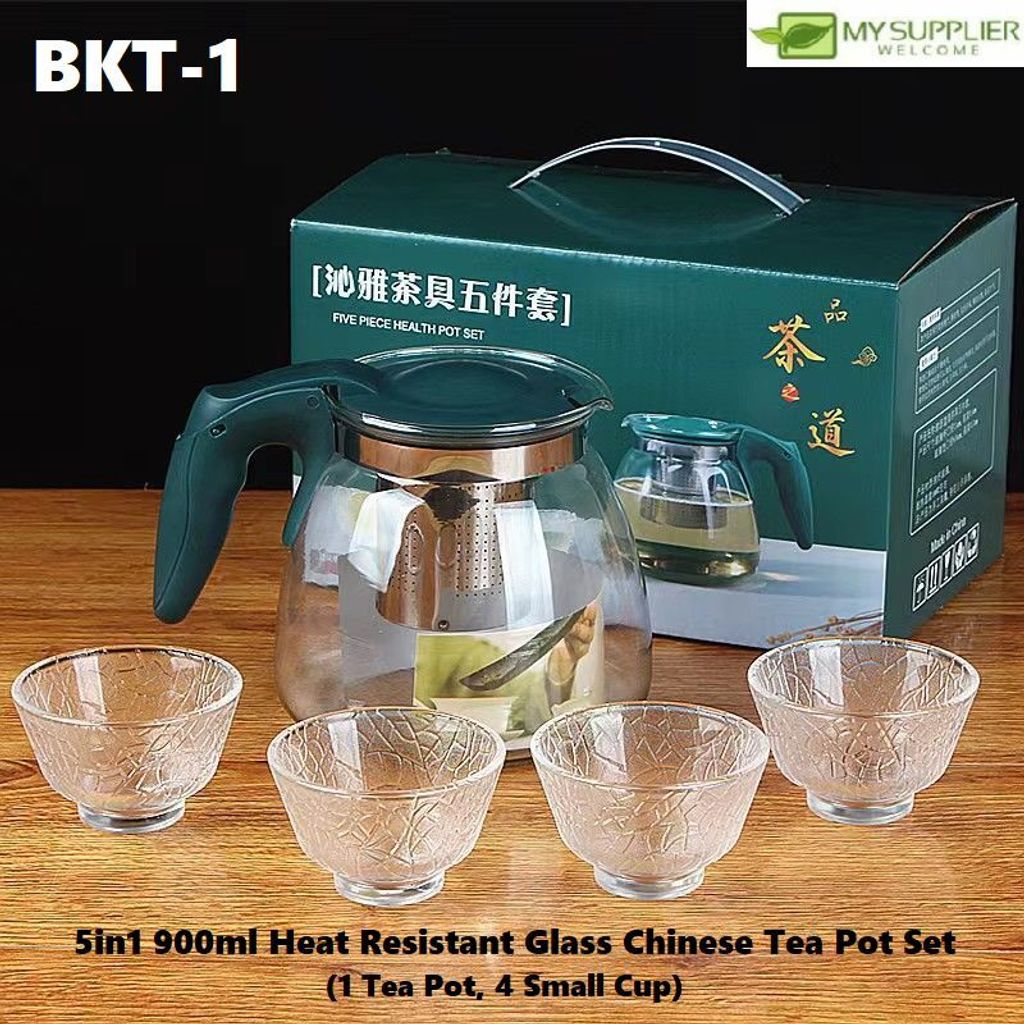 BKT-1 5in1 900ml Heat Resistant Glass Chinese Tea Pot Set (1 Tea Pot, 4 Small Cup)