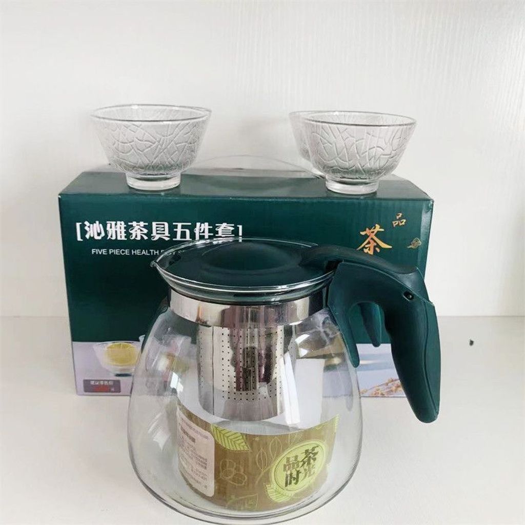 5in1 900ml Heat Resistant Glass Chinese Tea Pot Set (1 Tea Pot, 4 Small Cup)