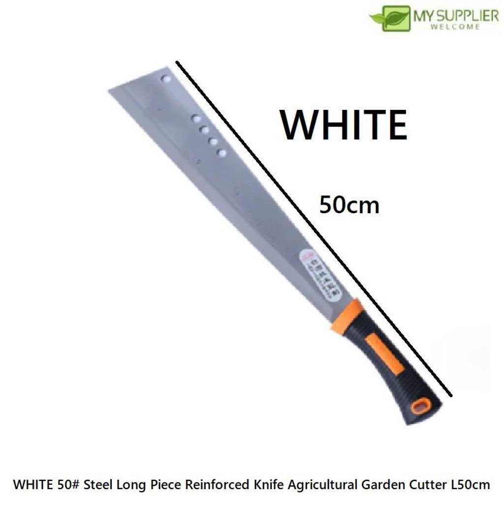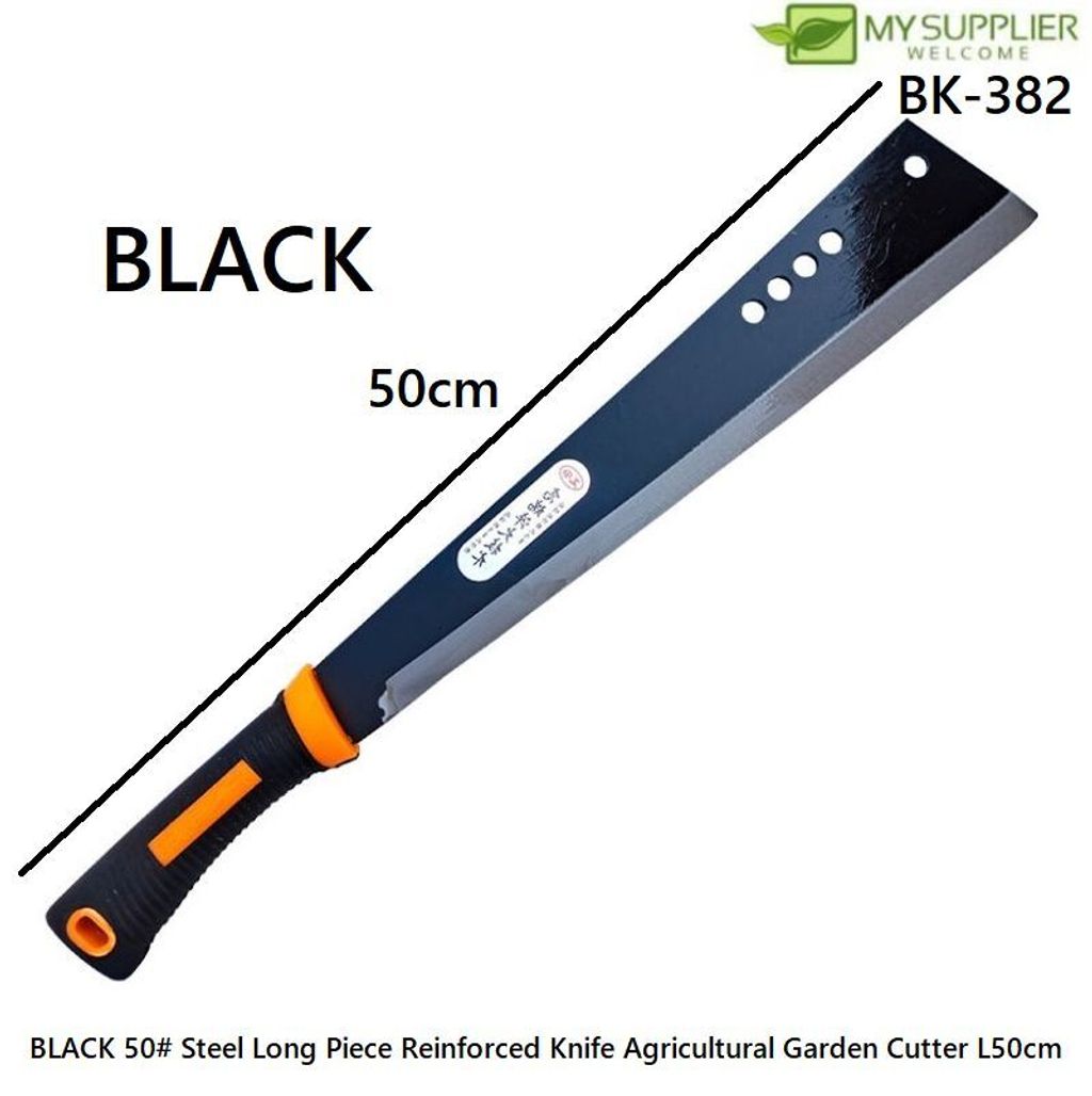 The BLACK/WHITE Steel Long Piece Reinforced Knife Agricultural Garden Cutter (L50cm) is a heavy-duty, long-bladed cutting tool designed for agricultural, gardening, and land-clearing tasks. Here’s a detailed breakdown of its features and uses: