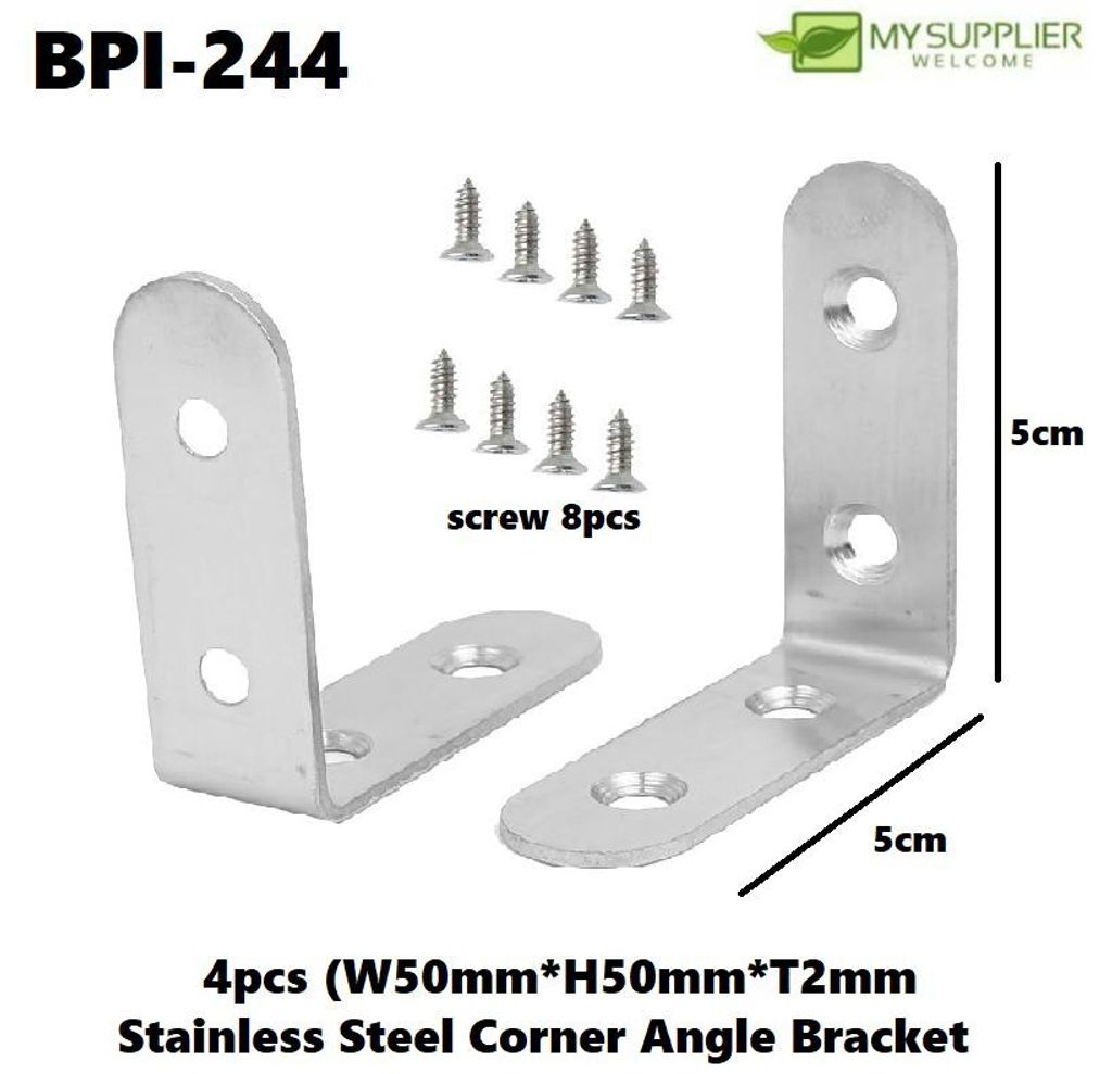 BPI-244 4pcs 50mm*50mm 2mm Thickness Stainless Steel Corner Angle Bracket (With Screws 8pcs)