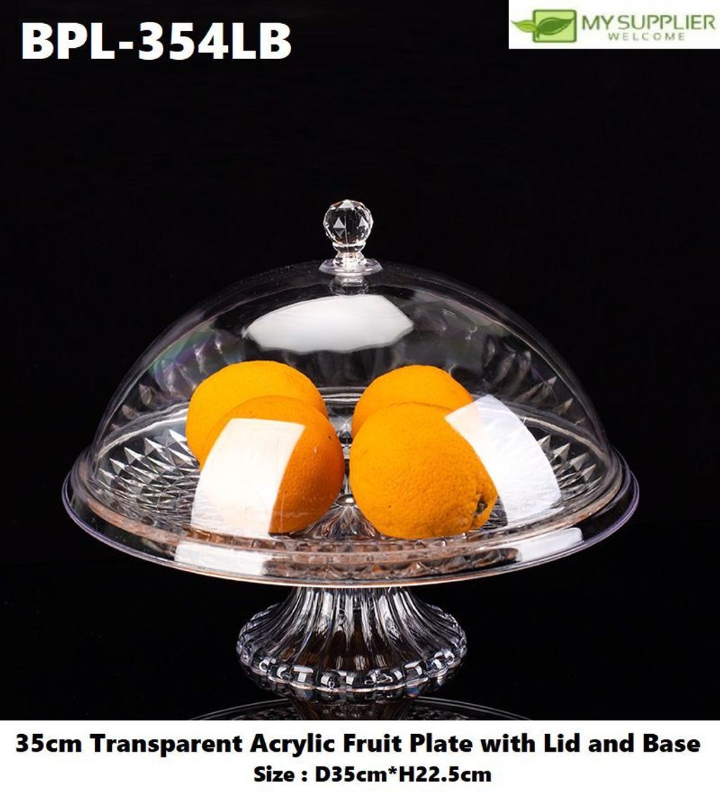 BPL-354LB 35cm Transparent Acrylic Fruit Plate with Lid and Base D35cm*H22.5cm
