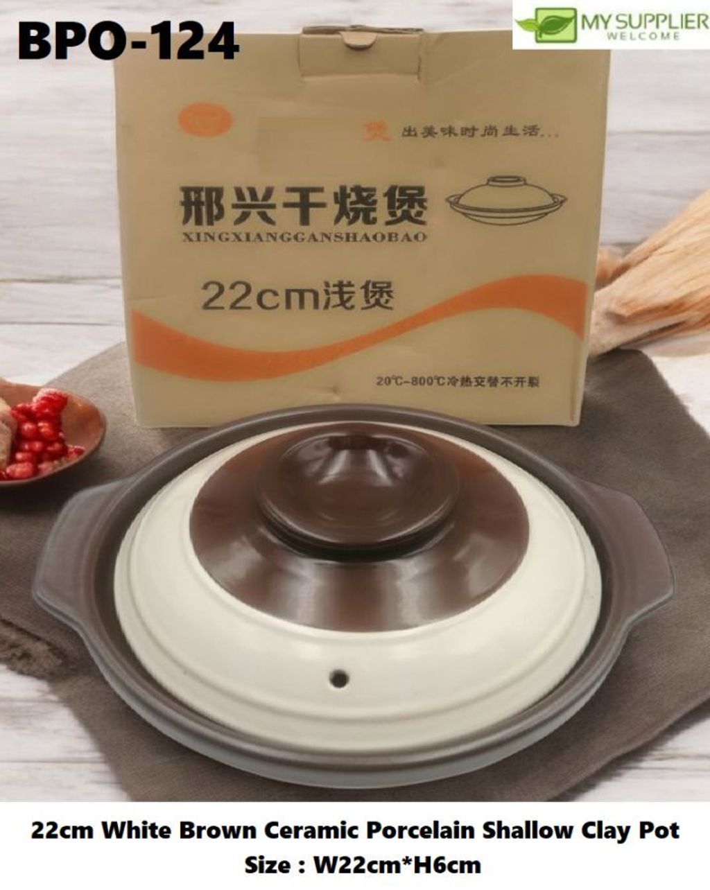 22cm White Brown Ceramic Porcelain Shallow Clay Pot
