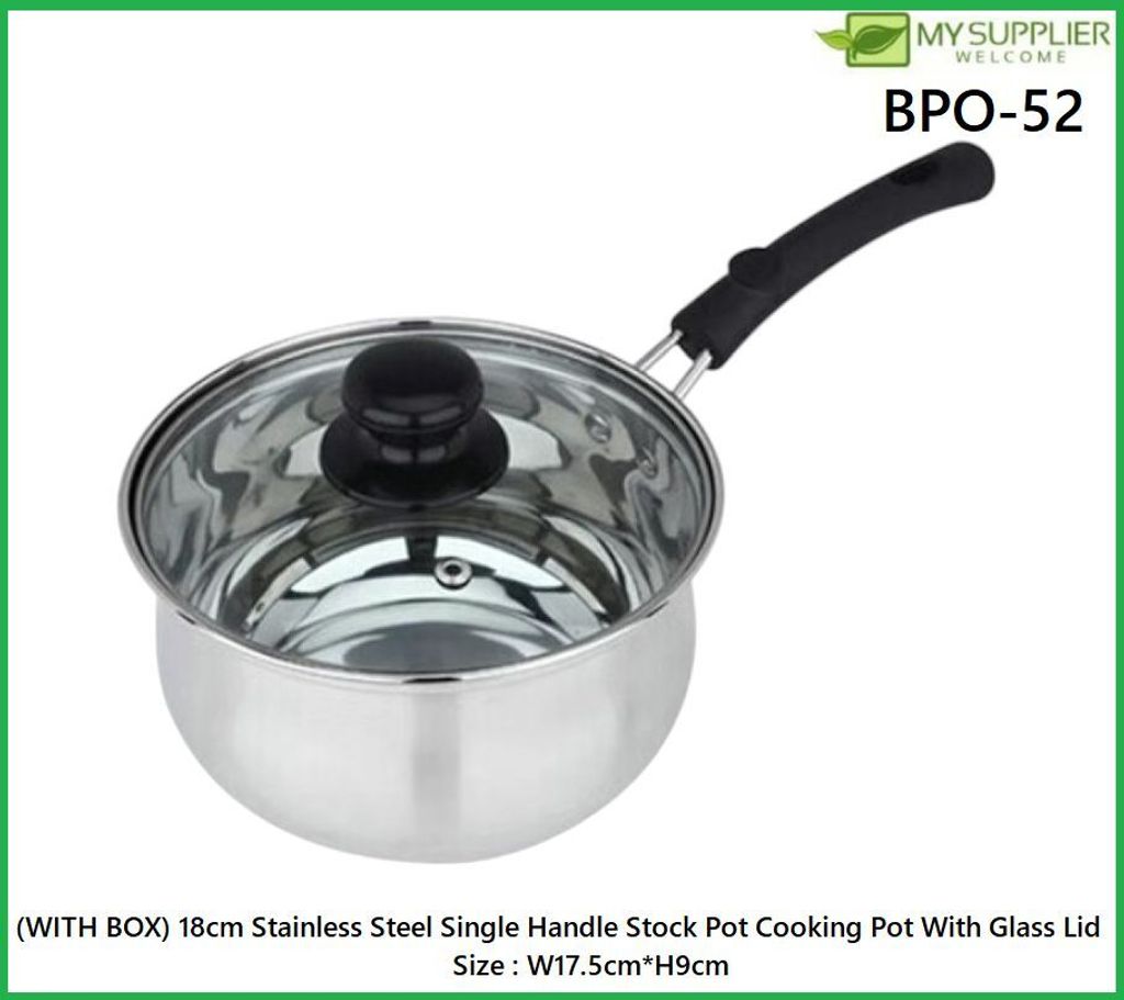 BPO-52 (WITH BOX) 18cm Stainless Steel Single Handle Stock Pot Cooking Pot With Glass Lid W17.5cm*H9cm