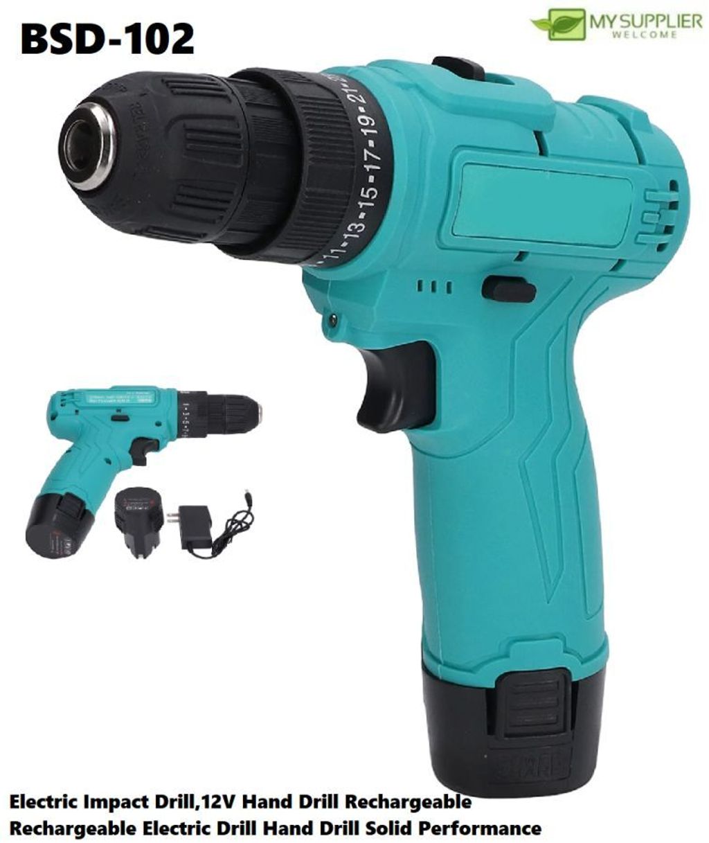 BSD-102 Cordless Drill Machine 12V Lithium-Ion 1.5Ah with 2 Batteries & Two Speed Control