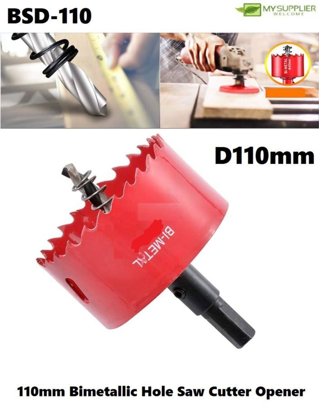 BSD-100/BSD-105/BSD-115/BSD-110 100mm-115mm Bimetallic Hole Saw Cutter Opener