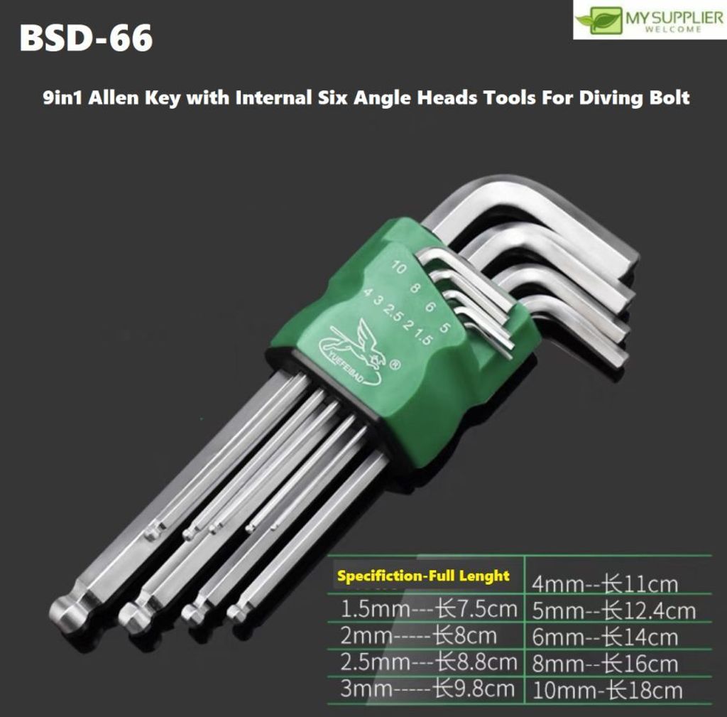 BSD-66 9in1 Allen Key with Internal Six Angle Heads Tools For Diving Bolt