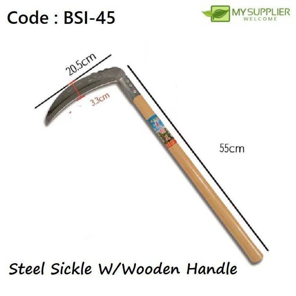 BSI-45 Steel Grass Sickle With Wooden Handle/Sabit Rumput L55cm*W20.5cm