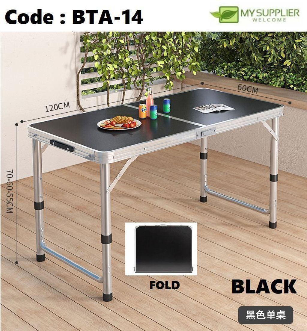 BTA-14 BLACK 120X60CM FOLDING CAMPING TABLE ONLY Table Adjustable Height Portable Camping