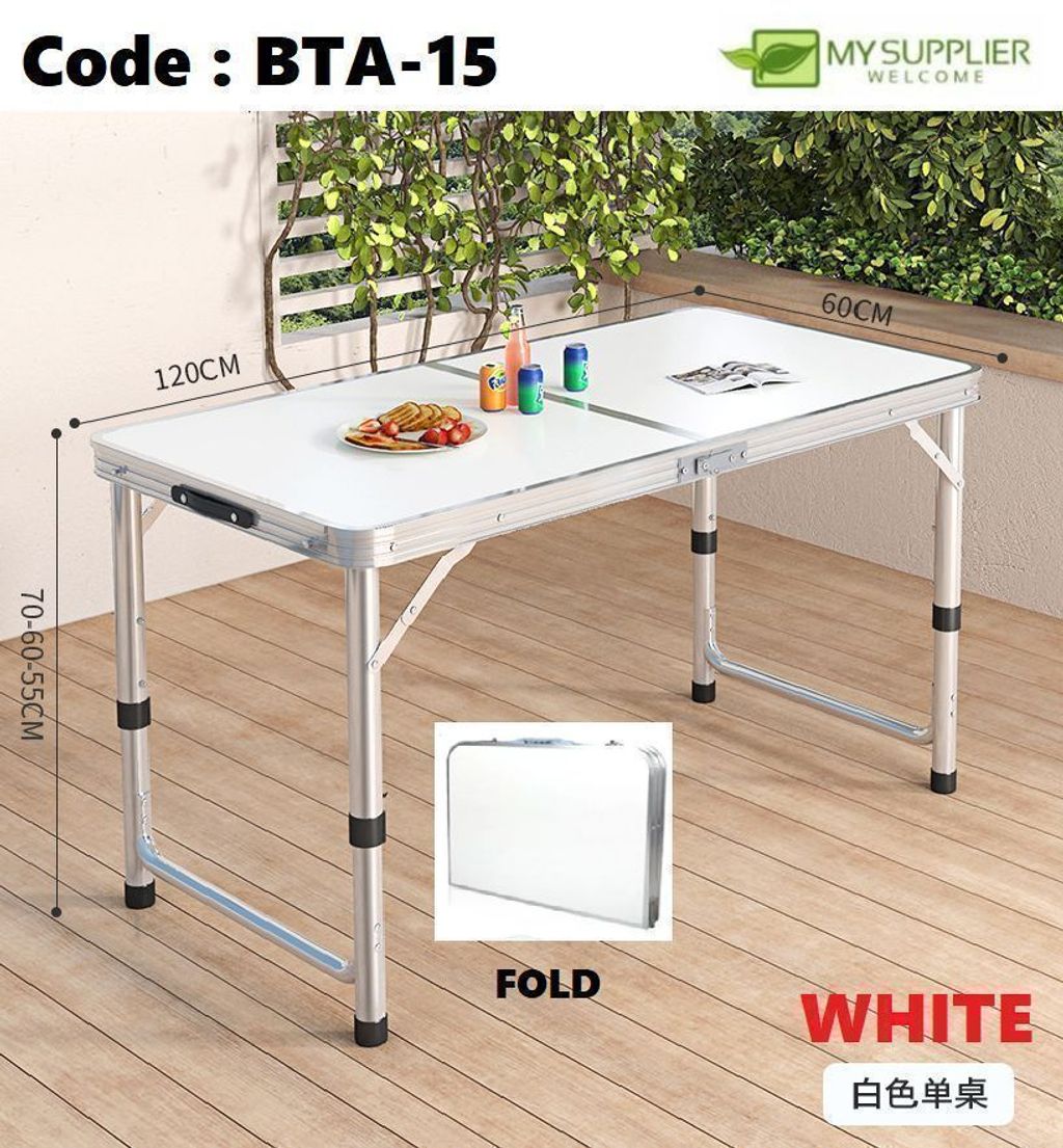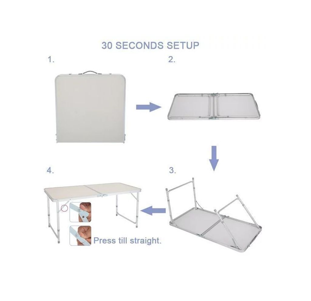 WHITE 120X60CM FOLDING CAMPING TABLE ONLY Table Adjustable Height Portable Camping