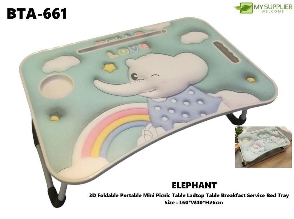BTA-661 ELEPHANT 3D Foldable Portable Mini Picnic Table Ladtop Table Breakfast Service Bed Tray 60*40*26cm