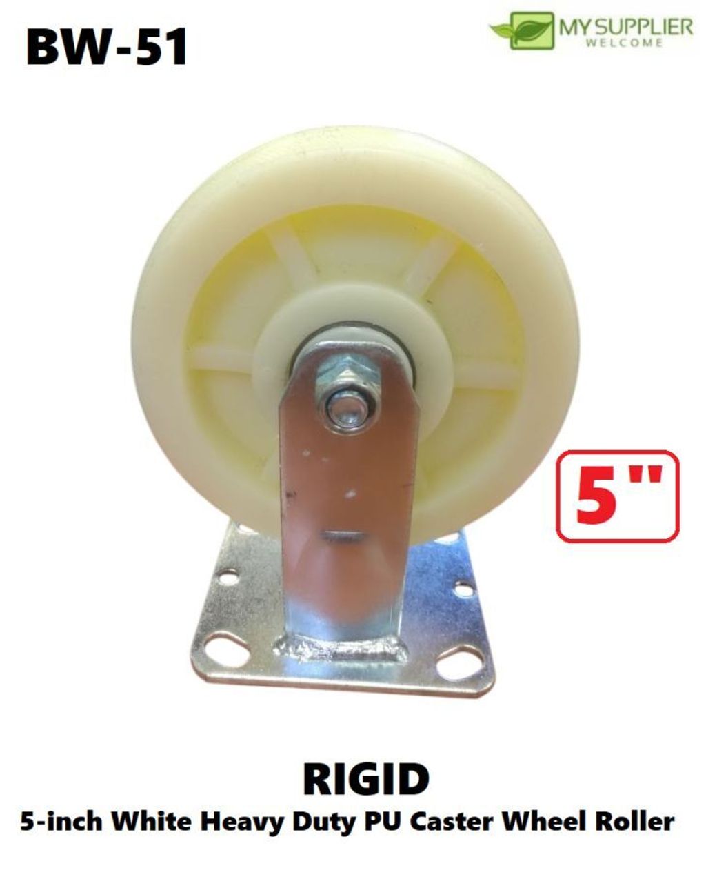 BW-51 RIGID 5-inch White Heavy Duty PU Caster Wheel Roller D12cm*H4cm