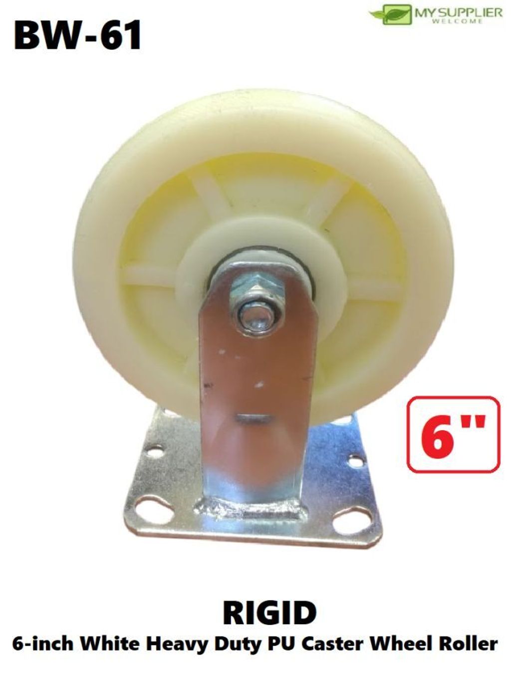 BW-61 RIGID 6-inch White Heavy Duty PU Caster Wheel Roller D14.5cm*H4cm