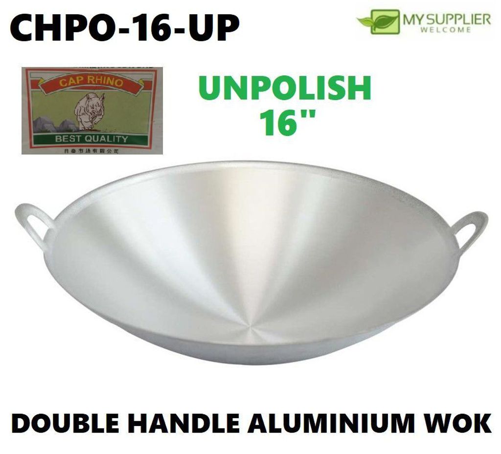 CHPO-16-UP UNPOLISH - 16" Rhino Double Handle Aluminium Wok / Kuali Kasar