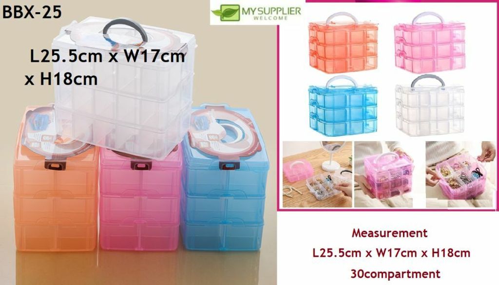 BBX-25 Eco-Friendly Organizer Three Removable Transparent Plastic Storage Box Acces L25.5cm x W17cm x H18cm
