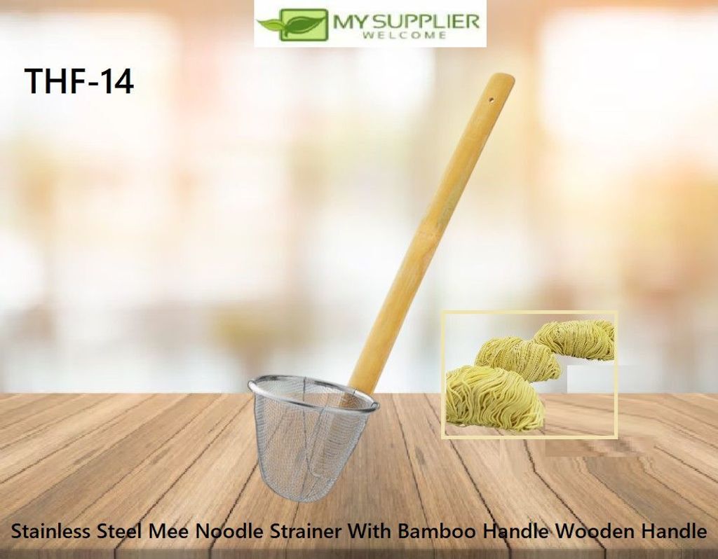 THF-14 Stainless Steel Mee Noodle Strainer With Bamboo Handle Wooden Handle/Mesh Noodle Drainer/Tapis Mee